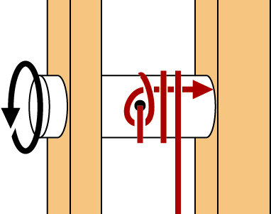 Es wird immer die komplette Saite gespannt. Das heißt, es sollte unbedingt vermieden werden, aus Faulheit eine Saite mit der Schere zu kürzen, oder sie extrem weit durch zu ziehen, um beim Aufdrehen Zeit zu sparen. Die Saite wird sonst eventuell nicht fest genug.